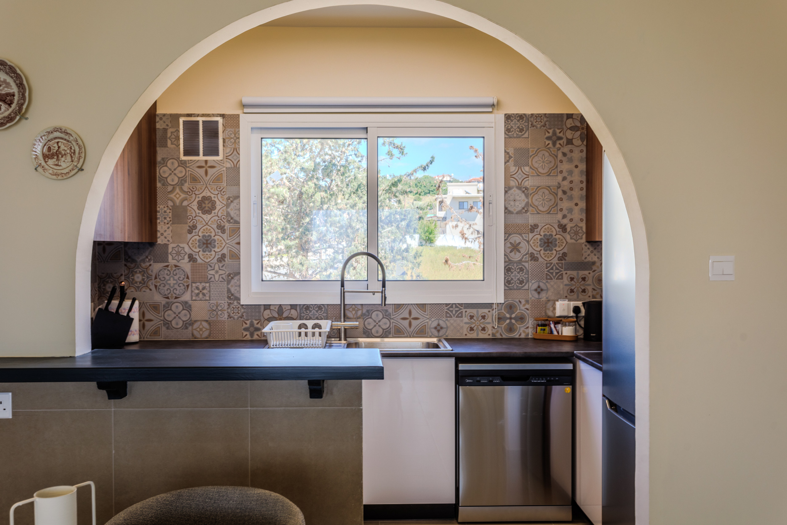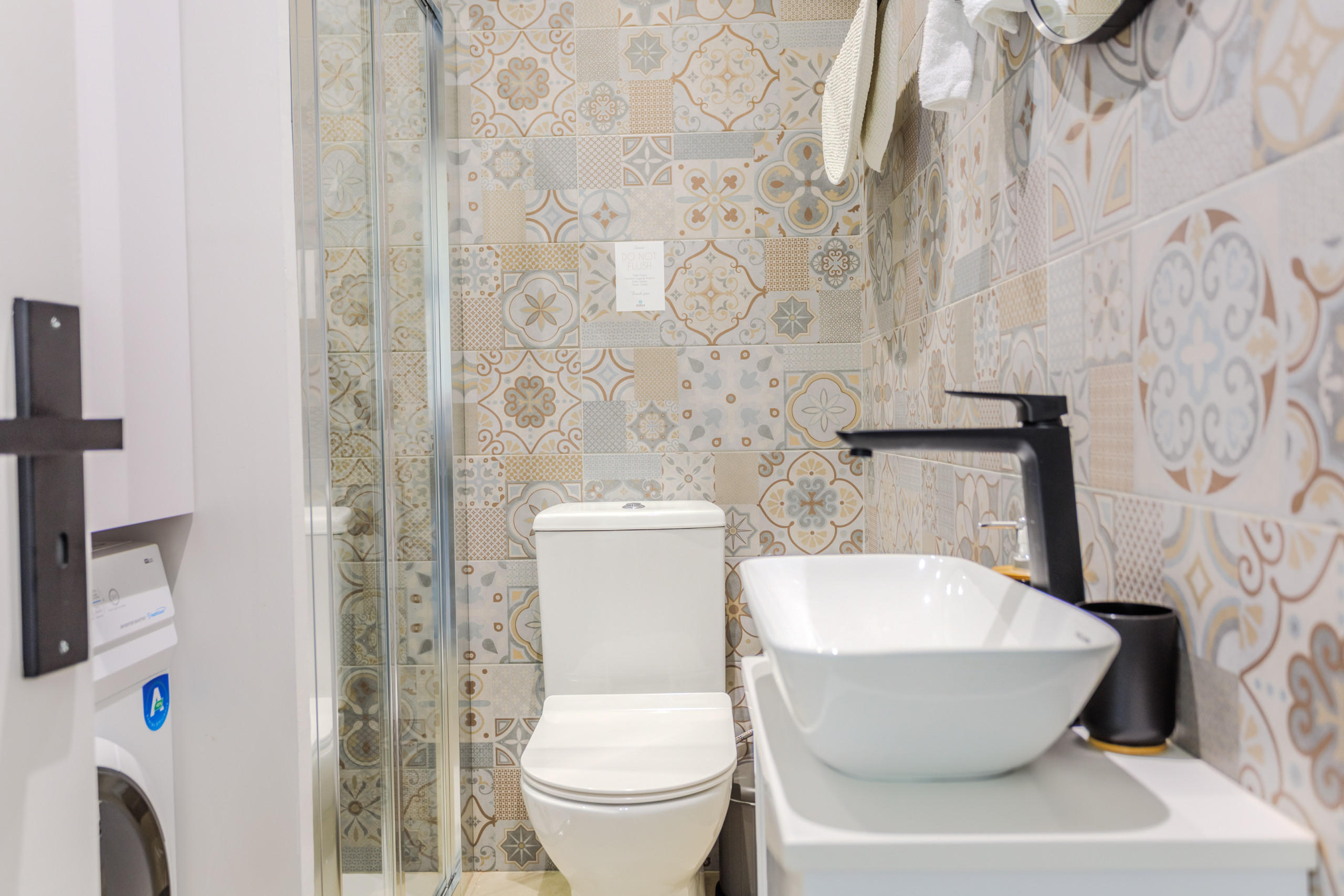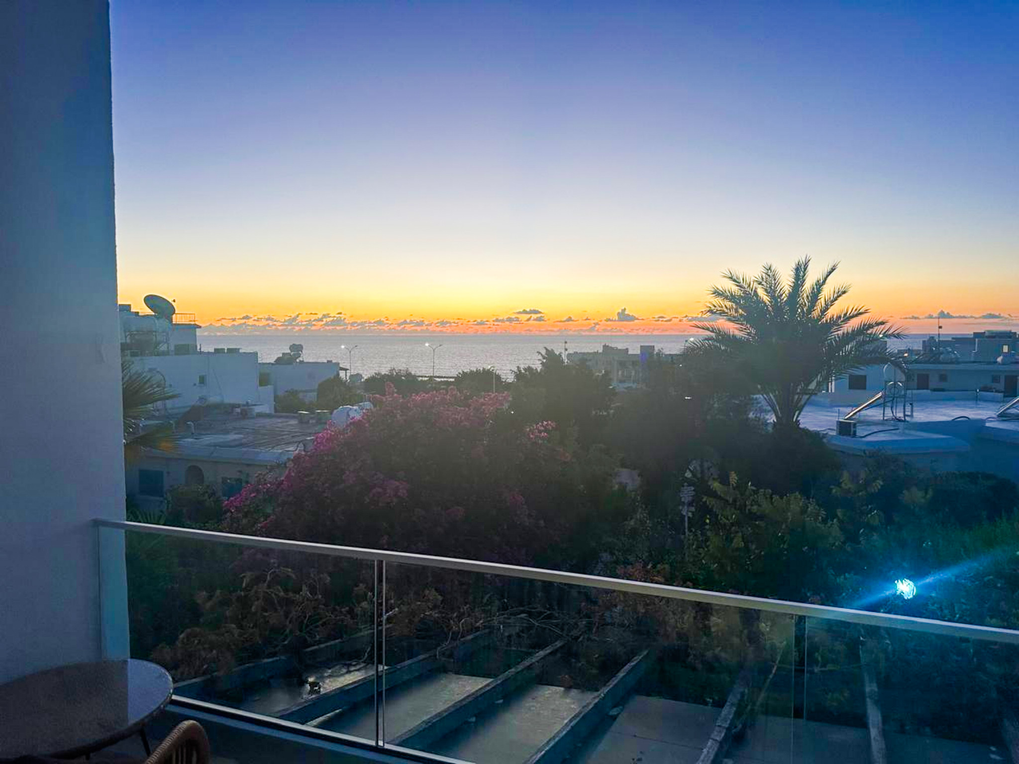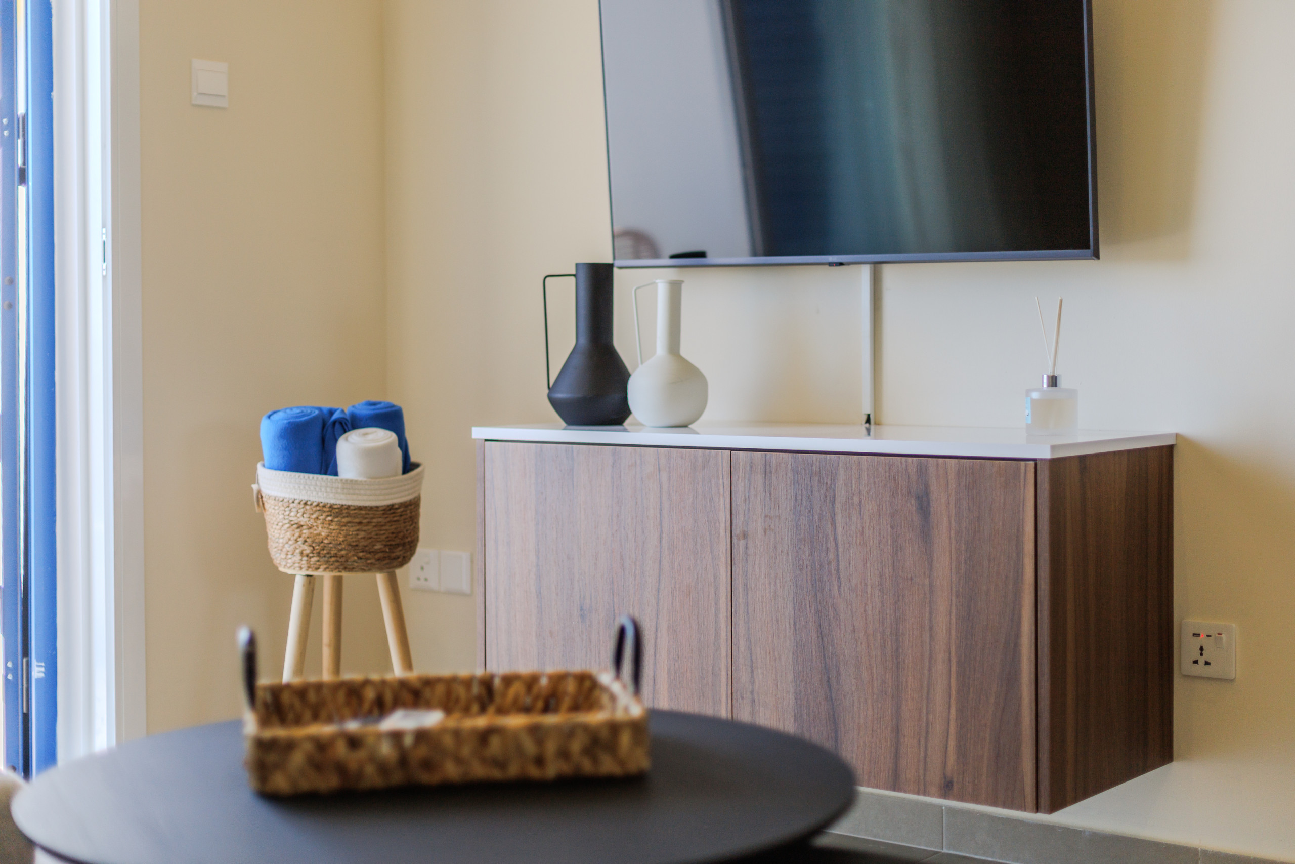 The space has an overall modern look. The living room is air-conditioned with a comfortable sofa bed and a TV with an android box connected to the internet and fully setup. There is a balcony where you can enjoy your morning breakfast with the sunrise, or a nice evening glass of wine at sunset.