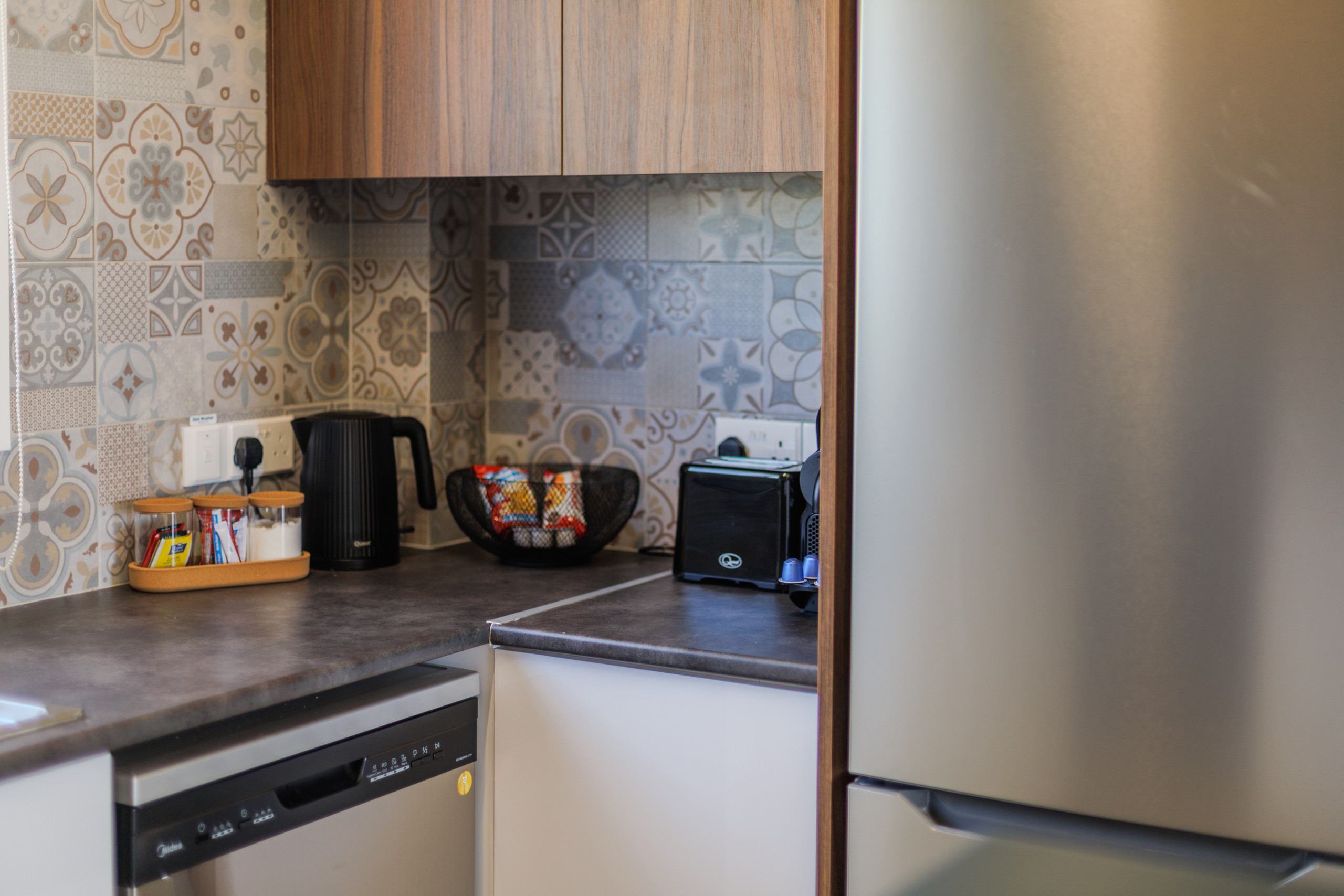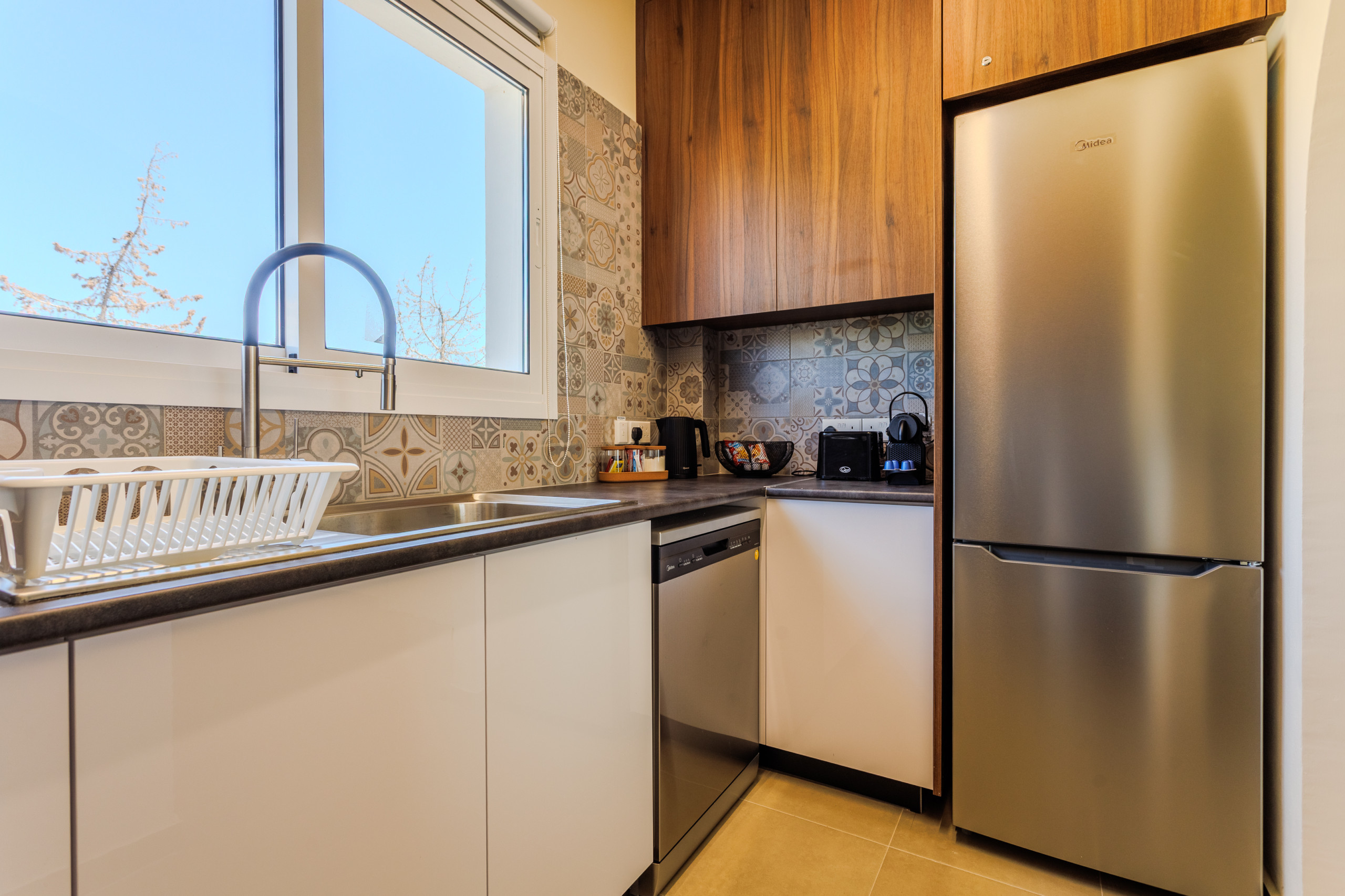 The kitchen will be equipped with coffee and sugar, salt & pepper, seasonal fruits, a bottle of mineral water, dish washing liquid soap with a clean sponge and a clean kitchen towel.