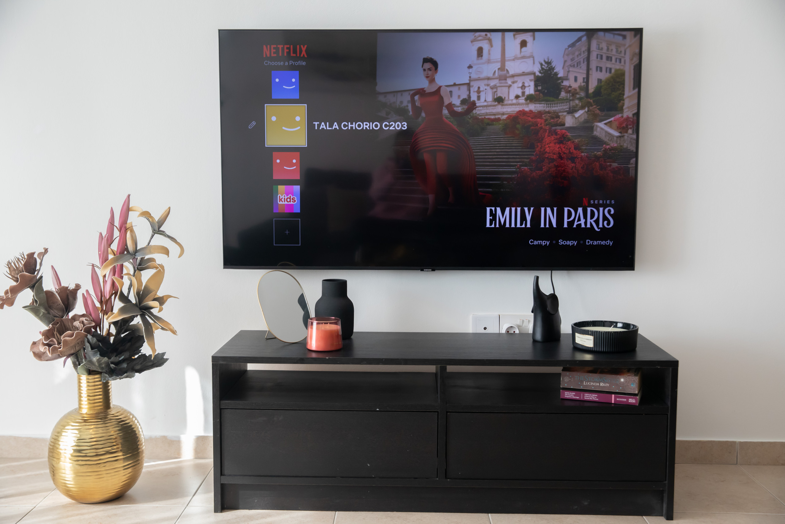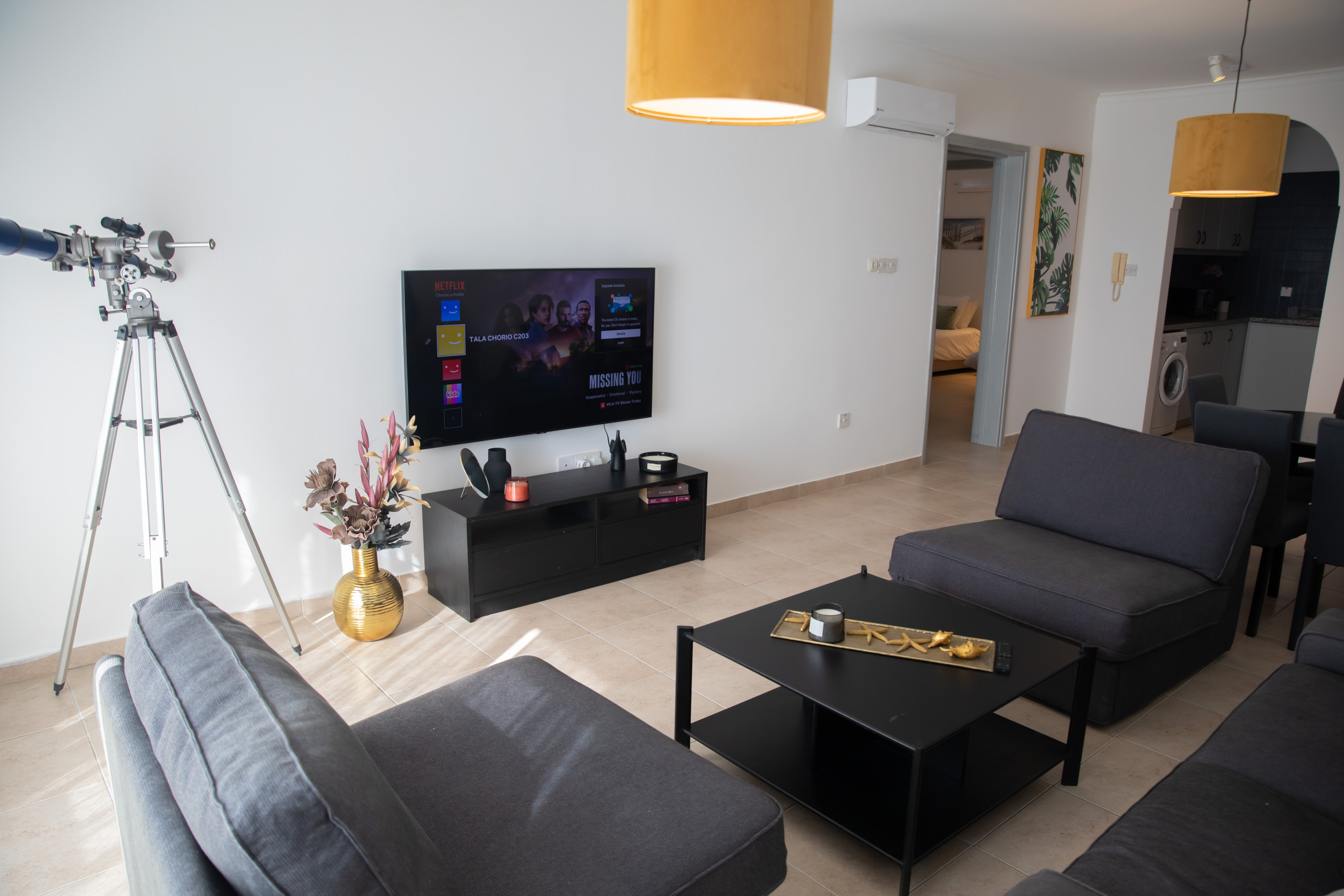 The accommodation is equipped with the following items: garden furniture, washing machine, iron, safe, internet (Wi-Fi), hair dryer, balcony, central heating, air-conditioned, communal swimming pool, open-air parking the same building, 1 TV.