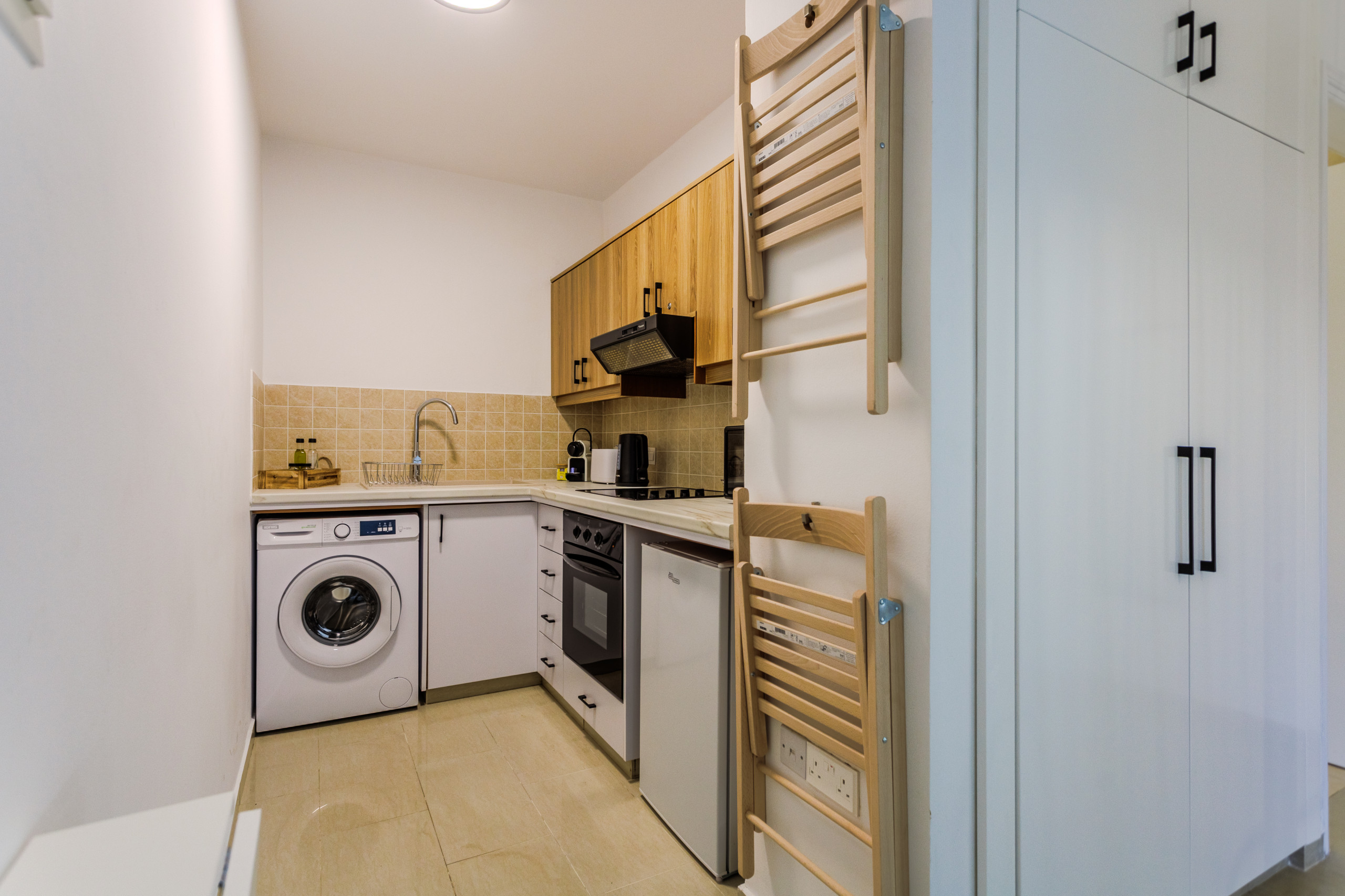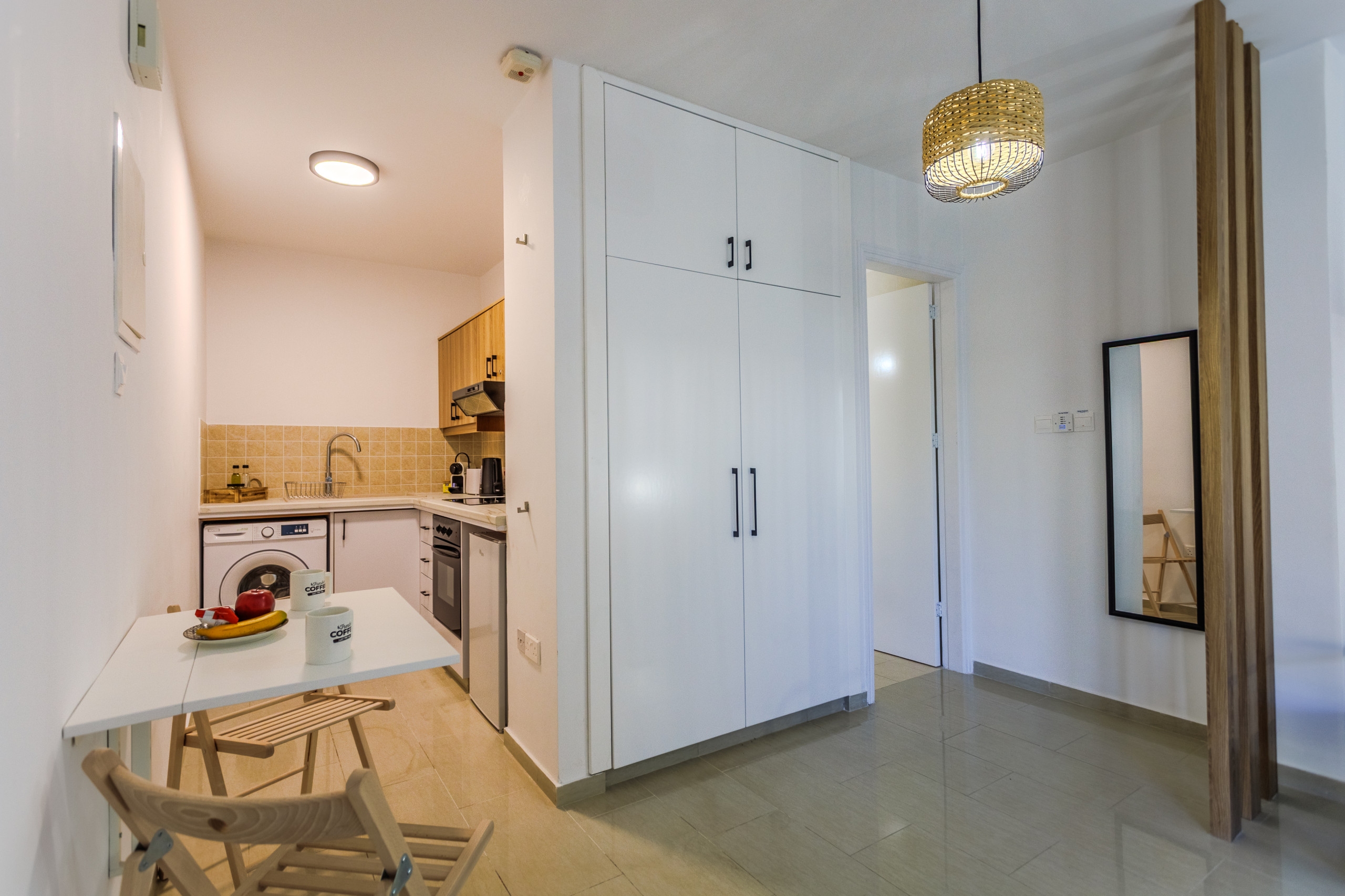 The apartment in Peyia has 1 bedrooms and has capacity for 3 people. The apartment is 40 m². The accommodation is equipped with the following items: garden furniture, washing machine, iron, safe, internet (Wi-Fi), hair dryer, balcony, central heating, air-conditioned, communal swimming pool, open-air parking the same building, 1 TV.In the electric open plan kitchen, refrigerator, microwave, oven, freezer, dishes/cutlery, kitchen utensils, coffee machine, toaster and kettle are provided.